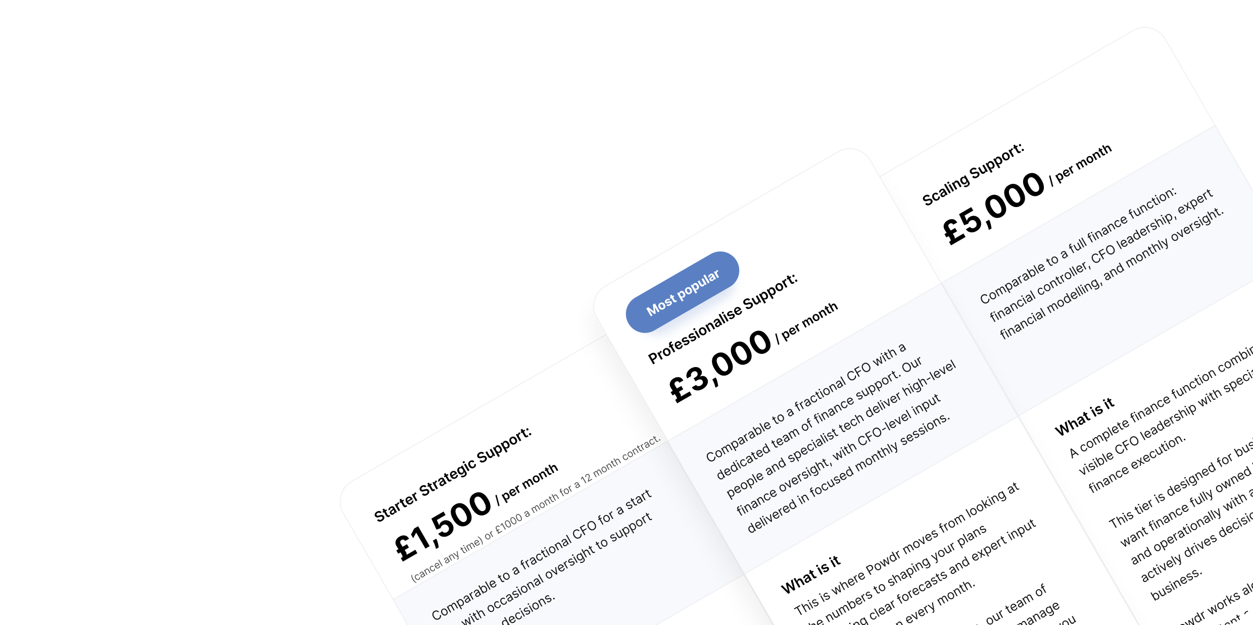 Comparable to a full finance function: financial controller, CFO leadership, expert financial modelling, and monthly oversight.